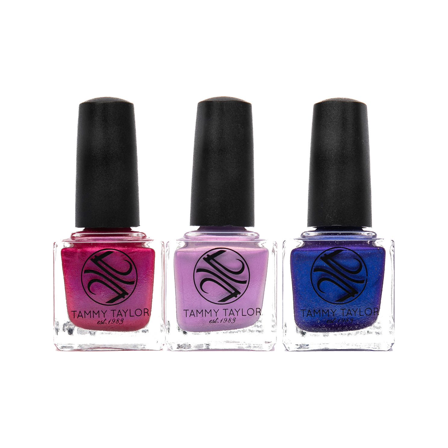 This Bundle includes 3 Gelegance Gel Polishes & 3 Soulmate Nail Lacquer's: Jackpot is a hot fuschia with satin shine opalescent . High Roller is an opal lavender. Winner Winner is an ultramarine violet with light fla