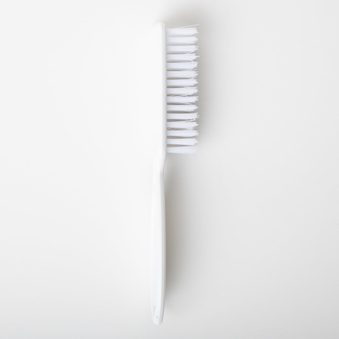 Professional plastic manicure brush excellent for use on natural and acrylic nails. The durable plastic bristles are designed for daily use with Soft Suds under the free edge to promote clean healthy nails.