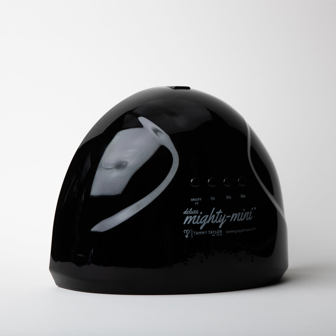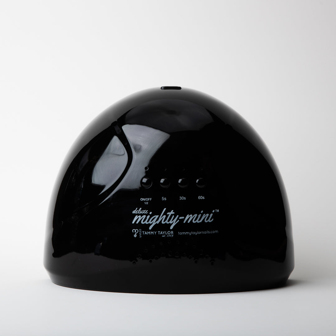 The Mighty Mini Deluxe is a compact LED/UV lamp designed to cure all five fingers at once with fast, even results. Its smart design features a removable magnetic plate and perfectly positioned bulbs to give you a consistent cure every time.
