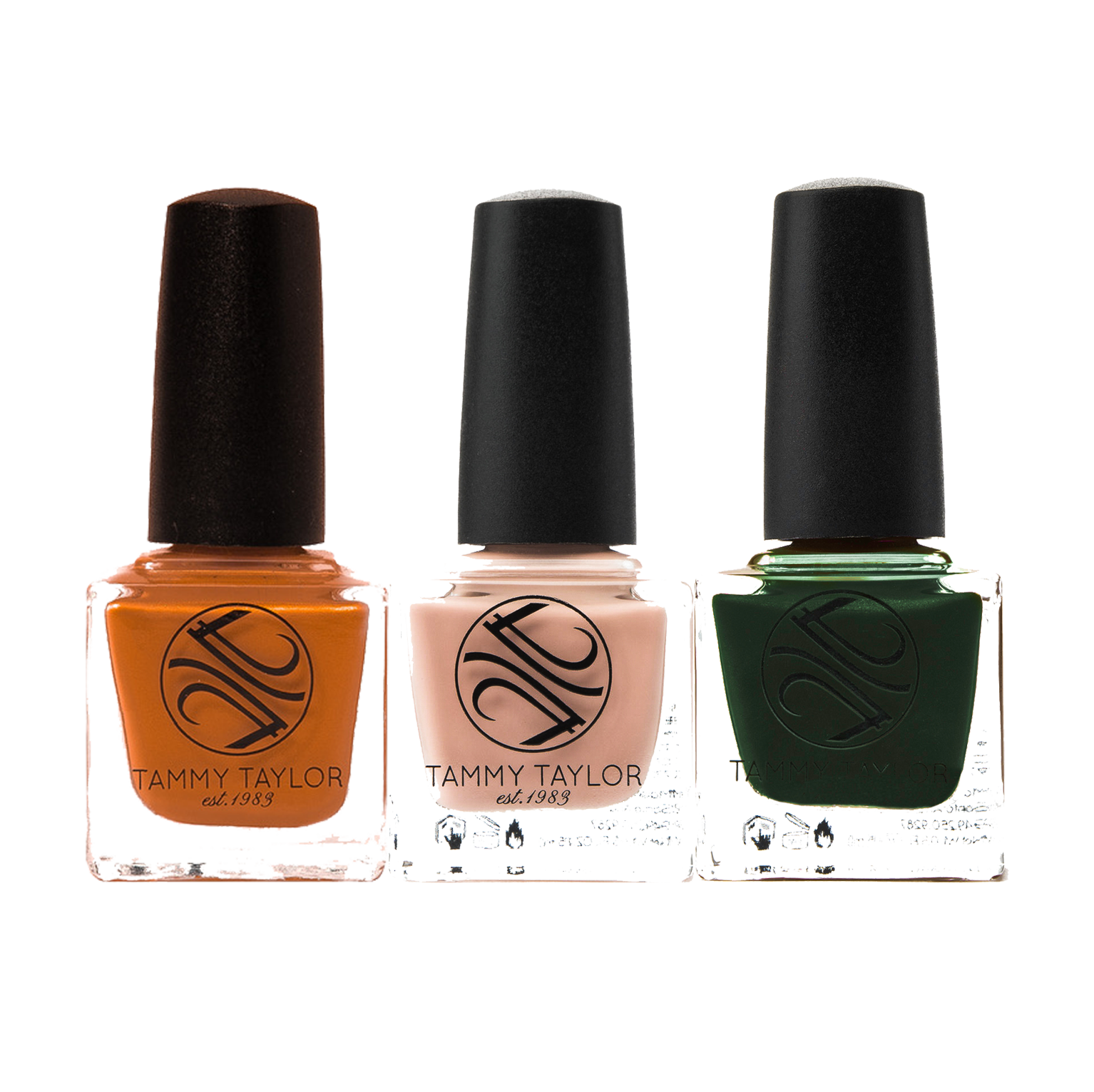 This Bundle includes 3 Gelegance Gel Polishes & 3 Soulmate Nail Lacquer's: Hey Pumpkin! is a burnt orange with shimmer. Beatnik Beige is a cool beige with shimmer. Gogo Green is a dark emerald. Gel Polish DETAILS: •