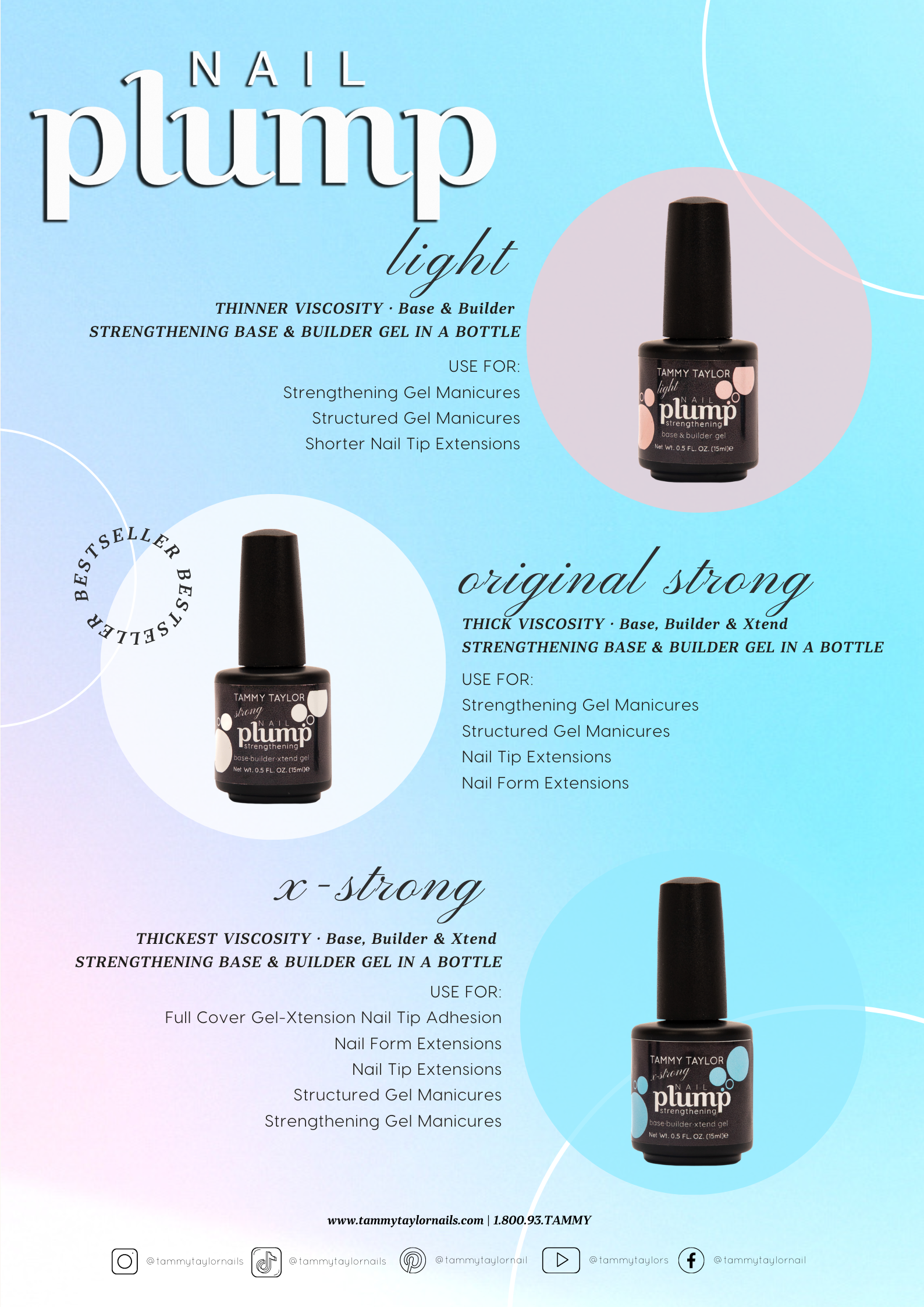 THICKEST VISCOSITY · Base, Builder & Xtend STRENGTHENING BASE & BUILDER GEL IN A BOTTLE USE FOR THESE NAIL PROCEDURES: Full Cover Gel-Xtension Nail Tip Adhesion Nail Form Extensions Nail Tip Extensions Structured Gel Manicures Strengthening